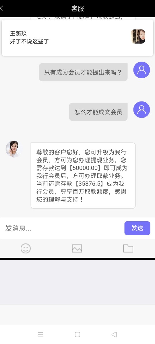 没有办法提现,客服要求必须存够五万成为会员才能提现