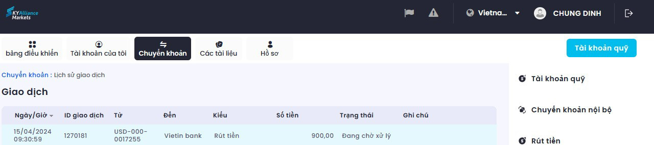 tôi cần rút tiền từ tk cá nhận về, vấn đề của tôi chưa được giải quyết