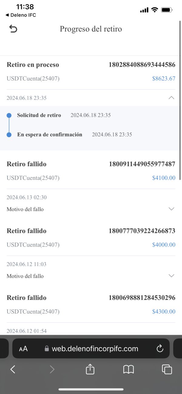 Desde el pasado 18/june/2024 hice solicitud de retiro por la cantidad de 8623.67 habiendo seguido los pasos recomendados por deleno ifc de reponer el duplicado lo hice y nunca me llego el dinero y ademas ahora no tenemos acceso a la cuenta, hice el deposito de 4312.2$ el dia 18 de june del 2024 y hice la solicitud de retiro pero el dinero nunca llego necesito ayuda