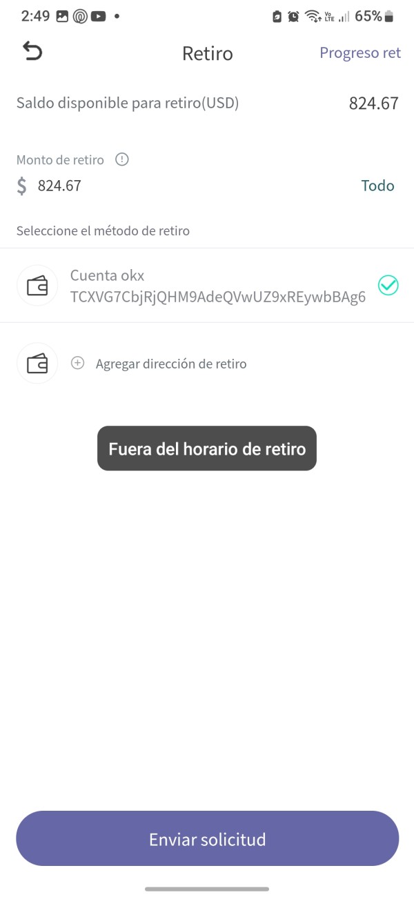 Desde aprox el 11 de agosto del presente año (2024) no se pueden realizar retiros primero con la excusa de que por la supuesta auditoria se congelaron los retiros, el día 16 pude mandar mi solicitud de retiro y había sido aprobada sin embargo el día 19 de Agosto me regresaron los fondos, intente realizar un retiro de nuevo pero ahora pusieron la excusa de que hay que pagar impuestos, en lugar de que te descuenten el dinero de tus fondos te piden que netas más dinero, desde mi posición no es posible pagar mis impuestos, no sé me hace lógico que en lugar de retener los fondos de tu cuenta para pagar los impuestos cancelen otra vez los retiros y tengas que meter más dinero aún. Al momento de querer hacer el retiro marca fuera de horario lamentable perder dinero con estas estafas. Si alguien pudiera ayudarme a recuperar mis fondos estaría profundamente agradecido incluso si hay que pagar alguna comisión.