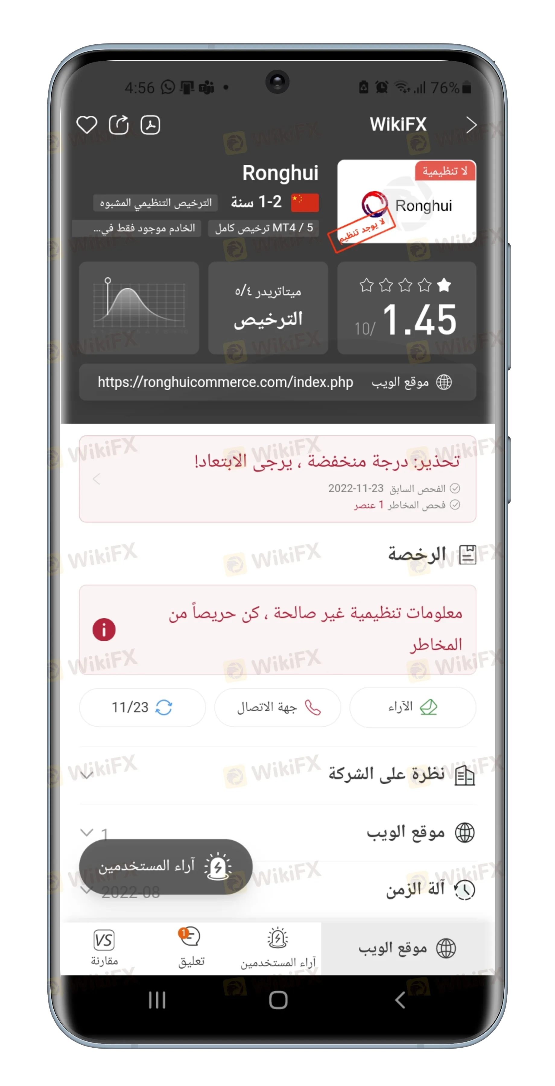 في الآونة الأخيرة، اشتكى مستثمر إلى wikifx من أن Ronghui Group لم تتمكن من سحب الأموال وحظر العملاء، وقال المستثمر إن منصة الصرف الأجنبي للذهب سهلة الإيداع وصعبة السحب، كما استخدمت عنوانًا وهميًا لسحب الأموال للعملاء، قائلاً أن الأمر كان لسحب الأموال للعملاء، لكنني تلقيت سألت خدمة العملاء إذا لم يكن لدي الأموال، وقالوا إن حساب العميل قد اختطفه المتسللون، إنه أمر مضحك، طلبت من خدمة العملاء التحقق، و حتى أن خدمة العملاء منعت العميل، إنها منصة مخترقة للغاية.