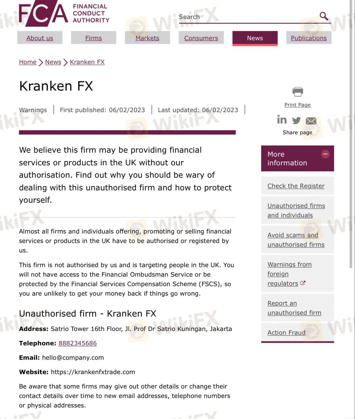 وفقًا لـ FCA ، لا يحق للوسيط تقديم خدمات مالية. في الواقع ، صرحت هيئة السلوك المالي (FCA) أنه ليس وسيط مرخص ، وبالتالي لن تحصل على أي حماية. تثبت مثل هذه التحذيرات بشكل شبه مؤكد أن شركة ما تقوم بنوع من عمليات الاحتيال - لذا امتنع عن اختيار الشركات المشبوهة التي حظيت بتقييم سلبي من السلطات المالية ذات السمعة الطيبة مثل FCA. الطريقة الوحيدة للتأكد من أن استثمارك في أيد أمينة وأنك ستعامل بإنصاف ووفقًا لجميع القوانين هي اللجوء إلى وسيط شرعي ومرخص.