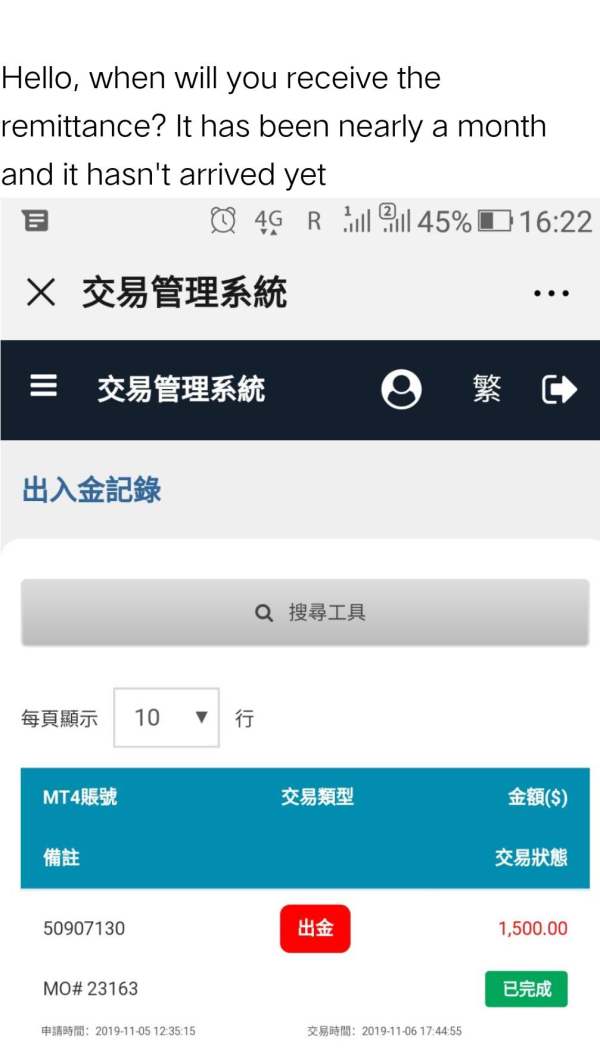 我在11月5号申请出金,11月7号收到审核已完成,到现在还没出给我,已经20天啦,发邮件也不回,又经常滑点