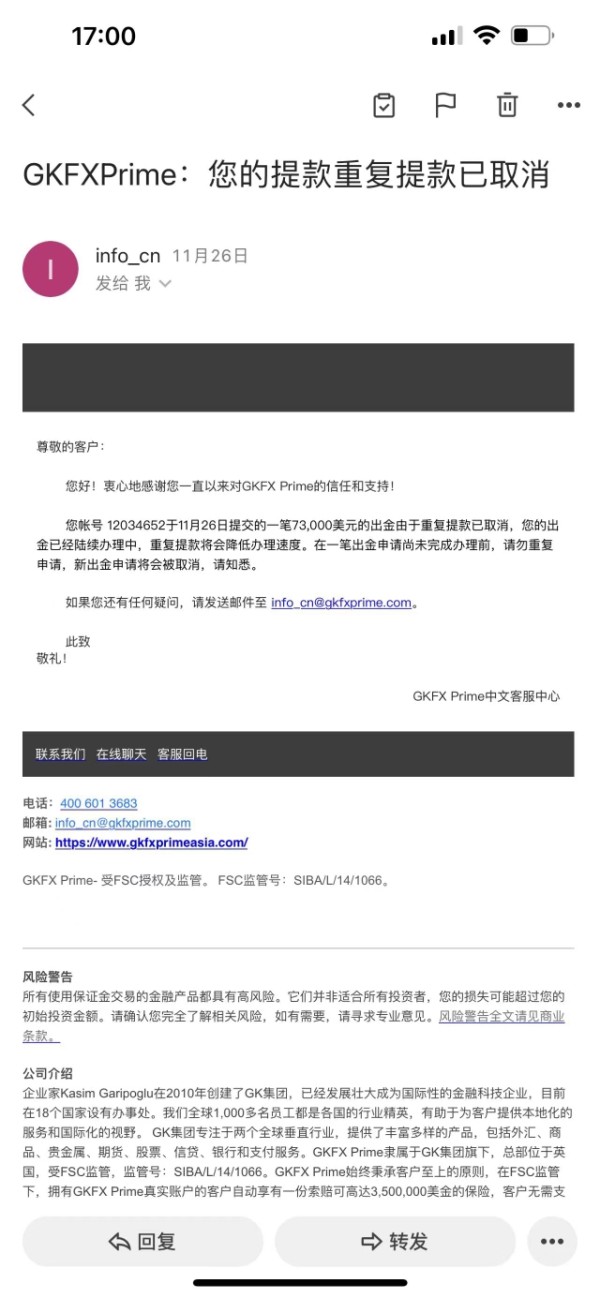 捷凯从11月26日起本金和盈利一直无法到账,客服也没给任何解释和说明,只是让等