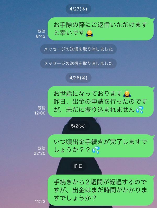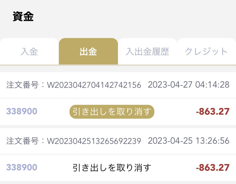 出金申請をしても出金されません。 出金手続きについて問い合わせても返信なし。