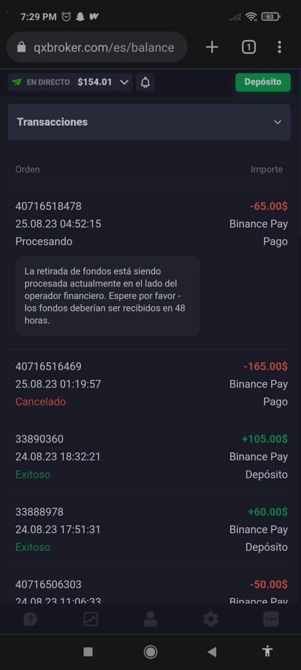 Hice un depósito por 105 dólares y 60 dólares. Luego de eso intenté hacer un retiró se demoró más de 4 horas, por lo cual, cancele y volví a hacer otro retiro por un monto menor. Me contacte con soporte por qué ya habían pasado más de 24 horas y me respondieron que debía esperar 48 horas o en su defecto de 3 a 5 días. Lo hice y me seguí contactando con ellos. Pasado este tiempo les escribí y me dieron una excusa de que mis datos eran inválidos que debía esperar, y nunca más respondieron. Apesar de esto seguí mandando mensajes a soporte sin obtener respuesta. Ha pasado más de una semana y me quitaron la opción hasta de cancelar ese retiró para que no pueda cancelar esa orden, y se quede como un retiró inválido. ( cosa que es totalmente falsa, cuando les pedí pruebas nunca me las proporcionaron)