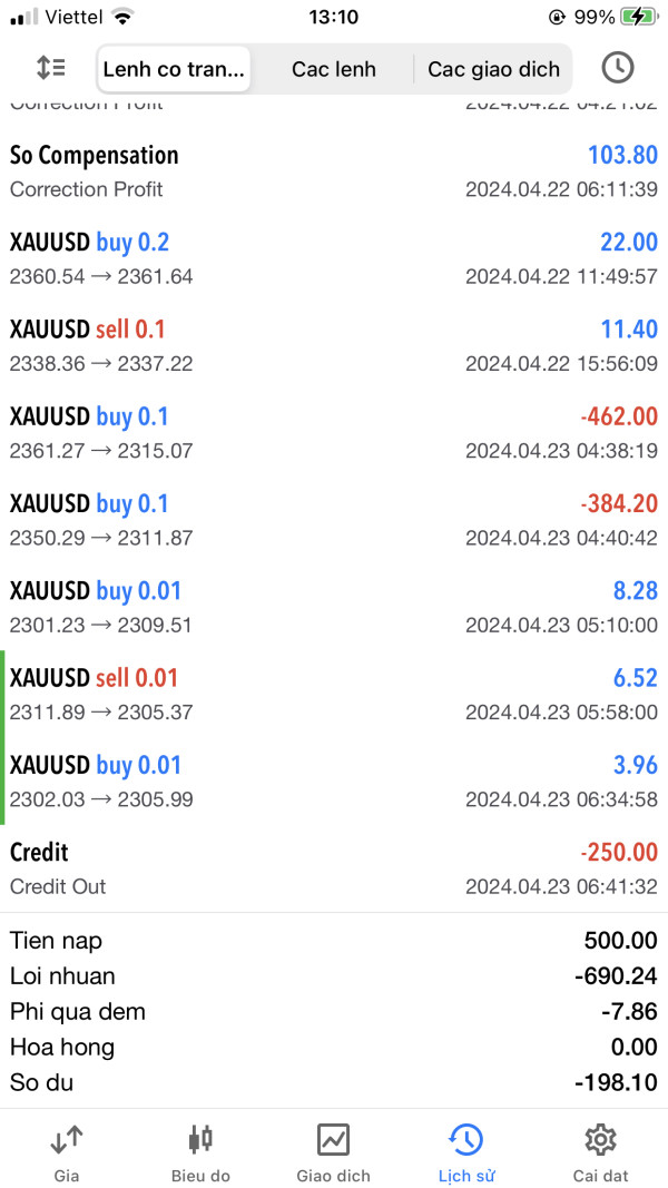 các support bắn lệnh ngược làm cháy tk khách hàng. sau đó bỏ mặc khách hàng ngập ngụa trong đám lệnh âm và đỗ lỗi cho thị trường. khu khách hàng có yêu cầu rút tiền thì viện lý do lễ lộc để khách ko rút dc tiền