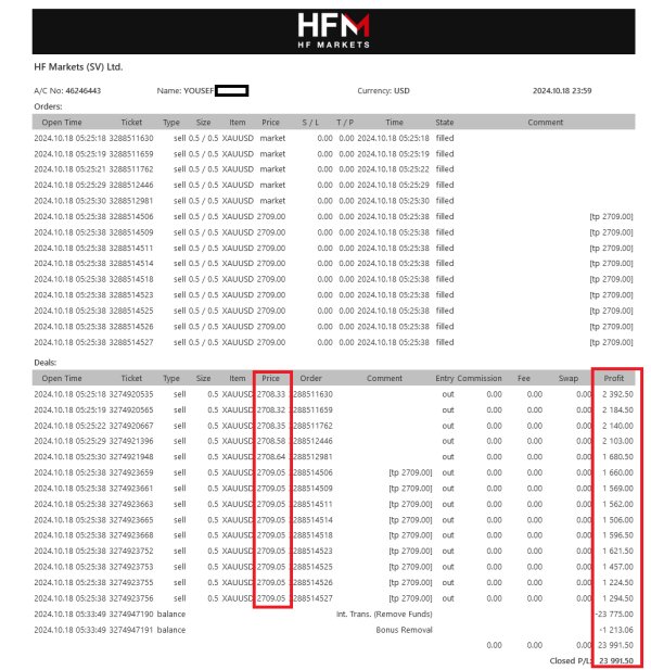 HF Markets (HFM) will scam you once you make profit. They will cancel your profits (make them zero) and then terminate your account as soon as you they see you win. What's worse, HFM went to MANIPULATE all the trades on my MT5, and MANUALLY CHANGED ALL POSITIONS to ZERO PROFIT! (See screenshots) Then, suddenly, HFM sent me an email saying they cancelled ALL my profits. Because they claim I breached their Terms... Now, they take my money and they don't want to pay. I demand that the company return my profits immediately. They should be ashamed of their actions in manipulating MT5 accounts, and manually erasing all my hard earned profits. I have never seen anything like this manipulation. It's a scandal. I also advise ALL CLIENTS and users to withdraw their money from HFM and find a a better broker with integrity and honesty. If you keep your money in HFM, and make profits, it is very likely that they do the same to you. Withdraw your money and RUN AWAY from this company ASAP