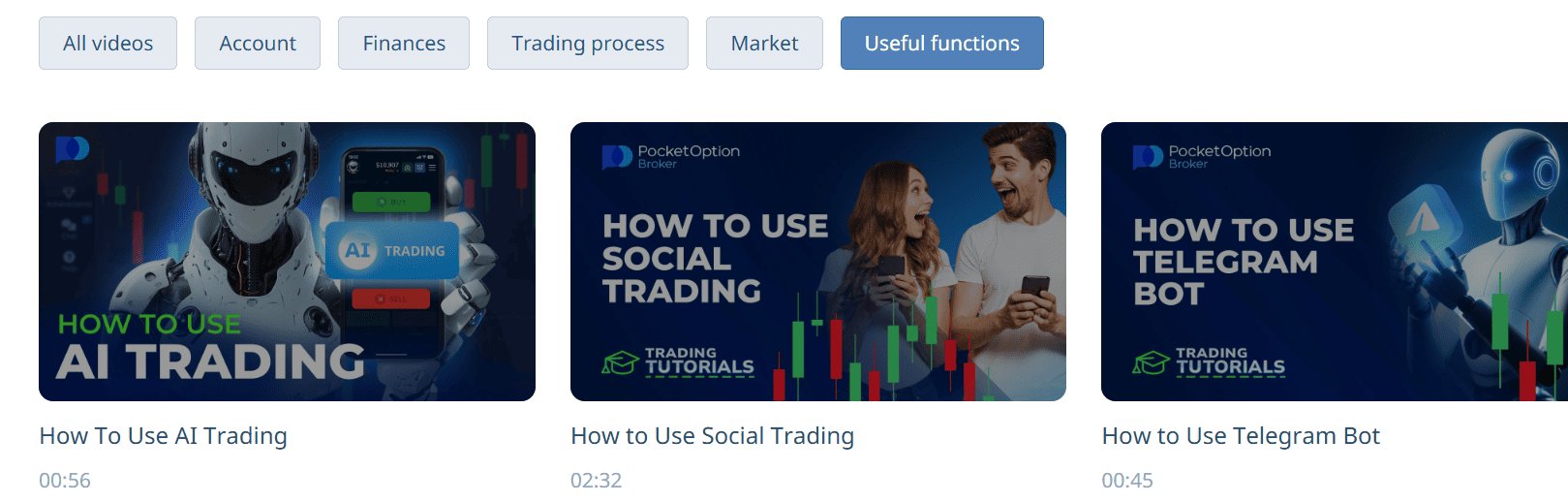 PocketOption I think you can see many hidden gems here like in useful links section, especially grea tfor beginners because it helps you to use the features like AI and social trading and etc.