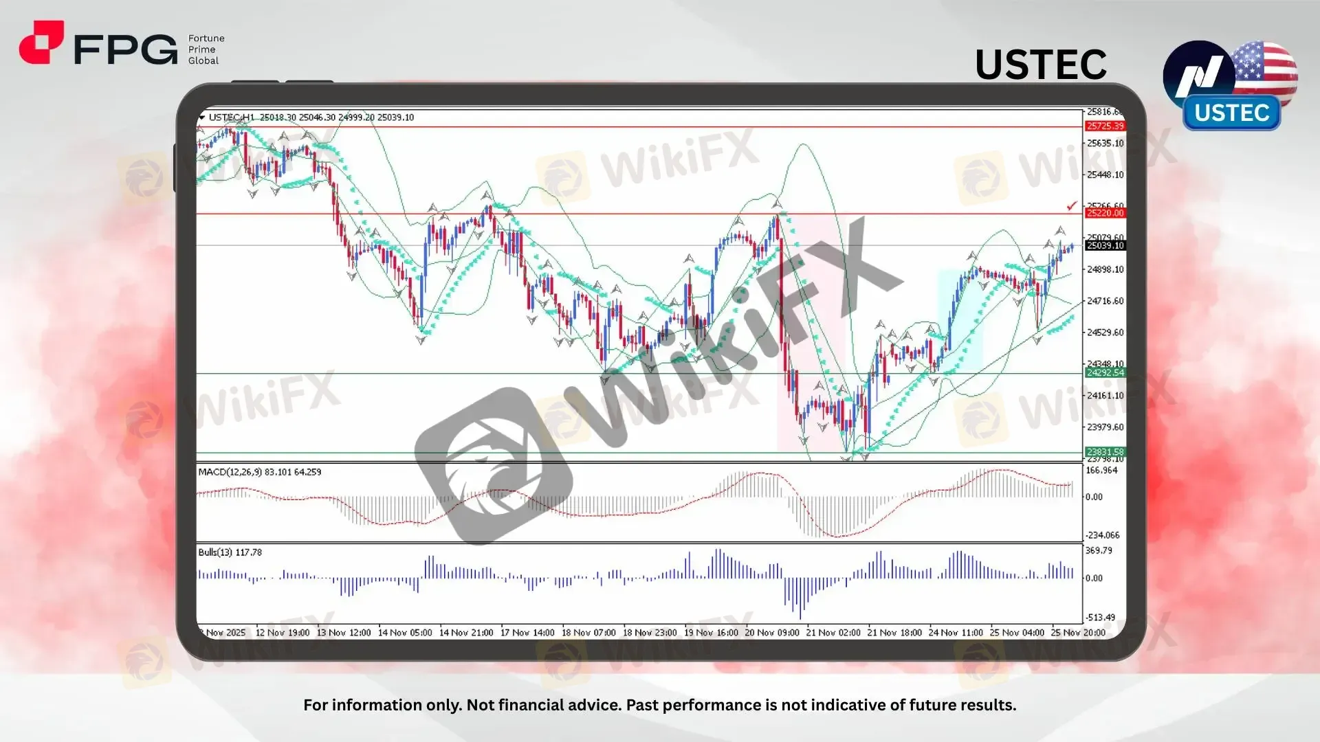 1. Current Position: USTEC (Nasdaq) trades around 25039, showing bullish sentiment and momentum recovery after a strong rebound from support levels.