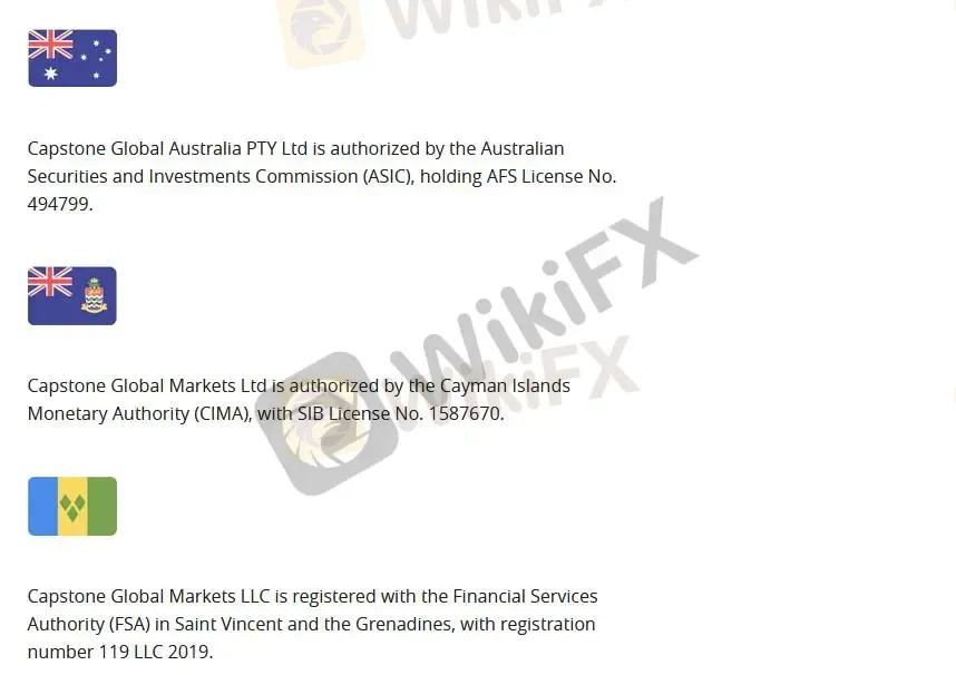Meanwhile, FXCG's Cayman Islands entity, Capstone Global Markets Ltd, holds an SIB license issued by CIMA. As an internationally recognized financial regulatory body, CIMA's regulatory framework aligns with global financial standards, demonstrating a high level of professionalism in risk management and compliance review. This dual regulation is not simply an addition, but rather a complementary effect, ensuring that FXCG's entire operational process complies with the highest standards in different jurisdictions.