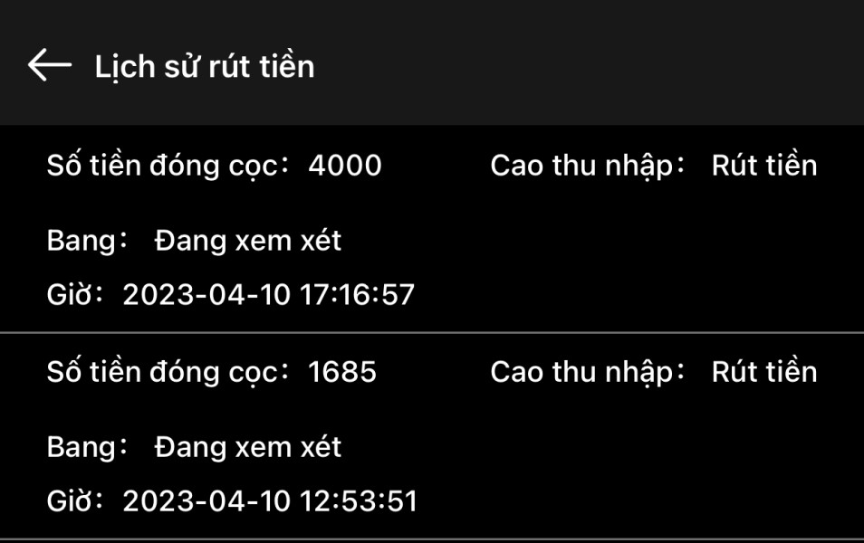Lần đầu nạp số tiền nhỏ có lãi rút về sau 5p, sau đó nạp thêm tk của tôi lên $5685 rút tiền ra bảo đóng thuế 20% vì trên 100tr có thuế thu nhập cá nhân, không đóng thì qua 24h tk đóng băng. Tiền treo 1 ngày rồi