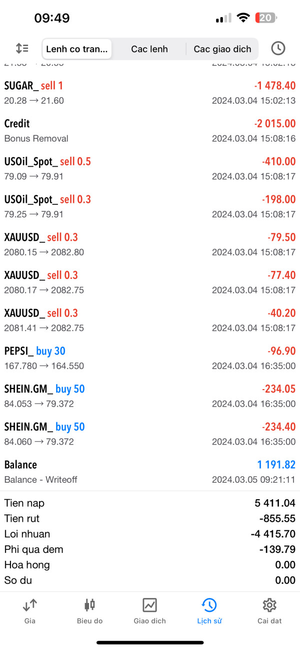 sàn cố ý lừa đảo tôi với số tiền 250 tr khi tôi làm lệnh rút, họ tìm mọi lý do ko cho rút, cố ý nhồi lệnh lớn đee tôi cháy tk, ép nhà đầu tư nạp tiền để khôi phục tk, ntd ko đủ khả năng nạp, xong họ chặn hết ll của tôi