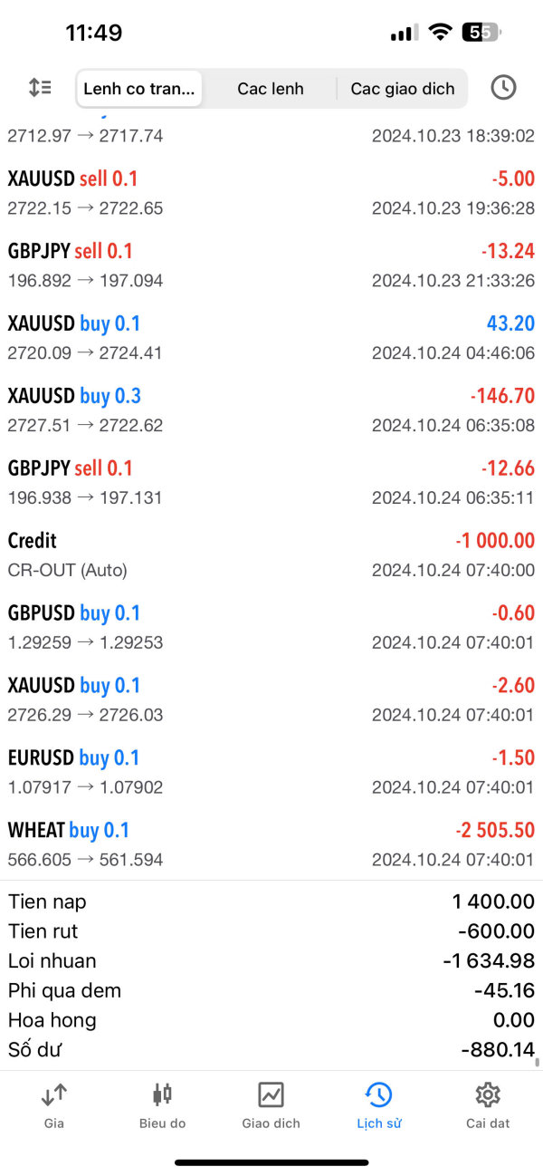 Tôi có mã tài khoản giao dịch : 851238 Thời gian vừa qua tôi có đầu tư vào sàn 800usd và lời 1600usd Tôi giao dịch được gần 1 tuần, và khi yêu cầu rút ra thì người hỗ trợ đồng ý (mr.long, mr.duy) Tôi vào lệnh rút.. Nhưng chỉ sau chưa đầy 5p, có một người tên huy gọi nói với tôi là đã nói chuyện với người hỗ trợ rồi và mình phải làm nhiệm vụ vào thêm lệnh cho đủ 10 lot xong rồi mới rút được ra và nhắn cho tôi 5 mã, yêu cầu vào lệnh 0.1 [GBPUSD,XAU,EURUSD,WHEAT..] + Mà trong đó mã WHEAT là mã độc của sàn Tôi vào lệnh được 1 lúc thì bị cháy tài khoản Câu hỏi là : + Tại sao người ta có thông tin tài khoản của tôi, trong khi tài khoản phải được bảo mật + Nắm được toàn bộ quá trình của tôi, từ A ~ Z, kể cả lần trước đó tôi có rút 200usd + Thông tin người bắt tôi vào lênh lại quen biết 2 người hỗ trợ tôi [tôi có liên hệ người hỗ trợ nhưng họ nói là không biết]