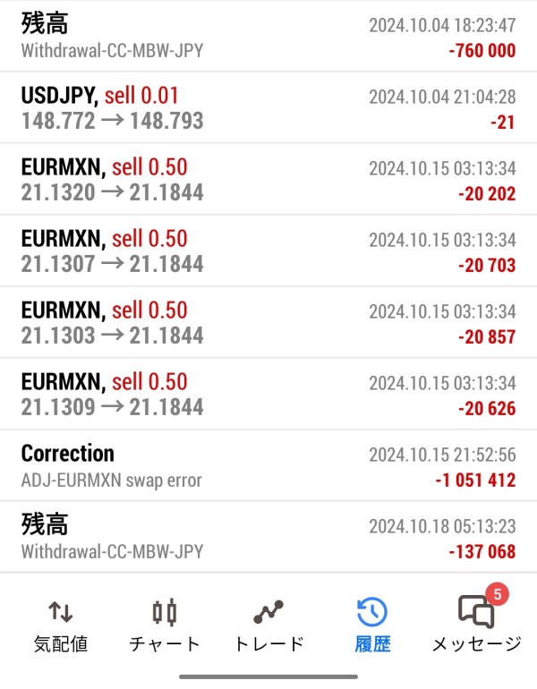 スワップの数値は会社のミスなのにその取引と取り消されました