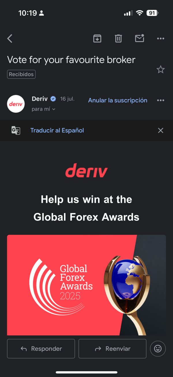 Para mí Deriv es un broker confiable y fácil de usar. Ofrece índices sintéticos únicos que operan 24/7, con una plataforma rápida, retiros seguros y soporte eficiente. Ideal para traders de todos los niveles.