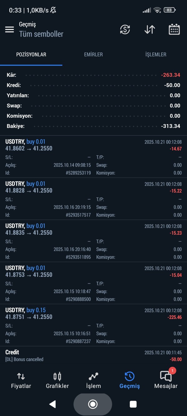 Merhaba. Ekte görüntüleri bulunan hesabımda usdtry paritesinden 0.19 lot işlem bulunmaktaydı. Gece saat 00.12 de bütün işlemlerim kapandı. Bütün her yere baktım fakat usd/try hiçbir yerde 41.25 e düşmedi hatta 41.85 den aşağı düşmedi. Ancak FBS'de işlemlerim kısa süreli düşme sonucu kapandı. Ekteki görsellerde işlem id, saat, tarih bulunmaktadır. Ayrıca id tarihleri yazıyorum Ad - Soyad: YASİN MELİH AKBULUT Hesap numarası: 111441685 Olayın gerçekleştiği tarih ve saat: 21 October 2025, 00.12 Emir ID: 5289253119, 5293517517, 5293511895, 5290888500, 5290887237 Lütfen dikkatli bakın, FBS her zaman yatırımcı dostu ve yatırımcının yanında olan bir aracı kurumdur. Usdtry paritesinde gerçekte böyle bir mum olmadı. Ayrıntılı şekilde incelenmesini ve paramın geri verilmesini talep ediyorum.