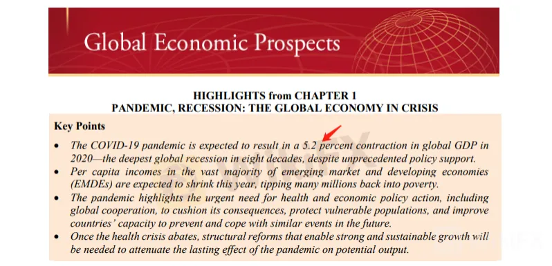 In the latest Global Economic Prospects released on Monday, June 8th, World Bank noted that the global GDP is expected to decline 5.2%, with a 7% shrinkage in developed economies; The contractions in US, the Eurozone and Japan are estimated to be 6.1%, 9.1% and 6.1% respectively, while emerging market and developing economies may expect a 2.5% decline.