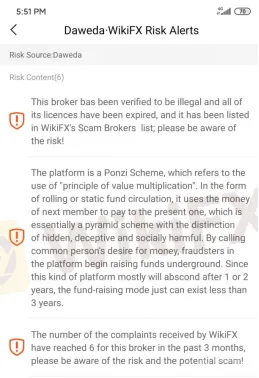 Abstract:In the early years, Daweda mainly provided binary options trading, then shifted its focus to forex and CFD trading. In the recent three months, WikiFX has warned that the broker is suspected of fraud and has received intensive complaints.