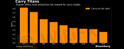 As the Fed promised to keep interest rate at a historical low of nearly zero, forex carry trades again draw the market‘s attention. Bloomberg’s analysis over 32 currencies shows that Indonesian rupiah offers the highest risk-to-reward rate in carry trades, followed by Turkish lira and Indian rupee.