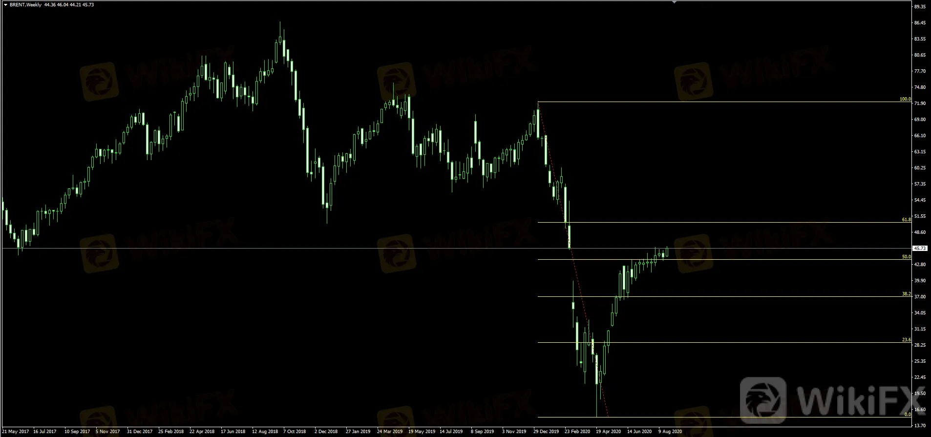 You may still remember April 22 for the first time in world history that oil futures were trading even below negative, and also since the end of April, oil prices have recovered rapidly until early now. It was slightly down on fears that the second wave of COVID-19 could make the price below $36.84/barrel. And until now, although there are waiting for slight corrections, char's path is increasing - reflected in waiting for the waves to rise and the bottom is higher than the old top and bottom.