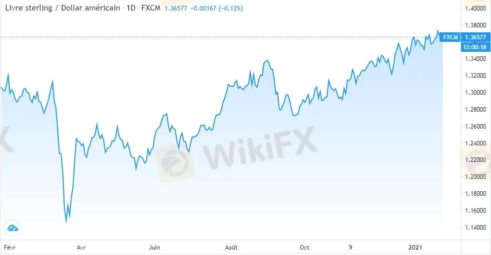 WikiFX News (14 Feb.)- GBP/USD has traded in extreme volatility since the March low in 2020. It suffered from choppy downsides after hitting a high of 1.373 in mid-to-late January. The pair is expected to continue struggling with swings as both the pound and the dollar appear to languish in the recent period.