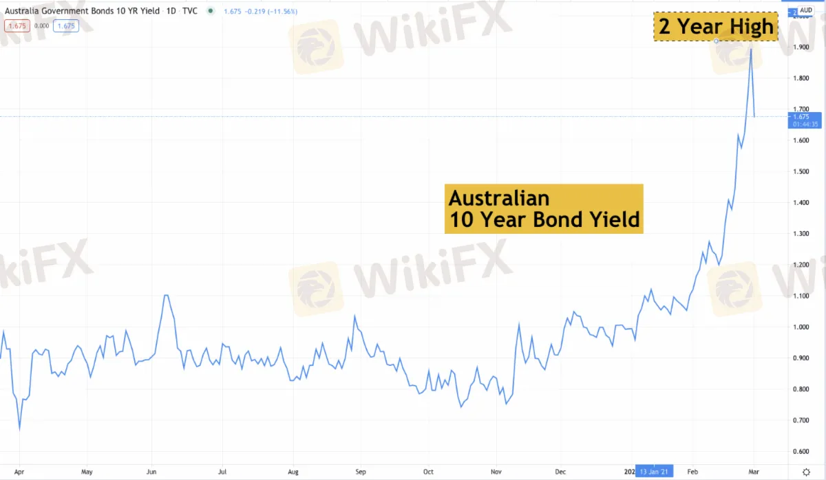 The Australian dollar was the day‘s best performing currency and this strength will be a problem for the Reserve Bank. Last night, the RBA surprised the market when they announced AUD 4 billion worth of bond purchases. This follows an unscheduled AUD 3 billion purchase of short term bonds on Friday. The central bank is taking aggressive measures to stem the rise in bond yields. While everyone has been focusing on the rise in U.S. Treasury rates and German bund rates, Australian yields experienced a similar surge. At the beginning of February the 10-year Australian bond yield was 1.12% and this past Friday, it hit a high of 1.91%. There’s no question that when the RBA meets tonight, theyll vocalize their concerns about rising rates. For there to be a durable recovery, interest rates need to remain low and to achieve this goal, the RBA needs to sound dovish. Just as rising yields threaten the recover, so does a strong currency. AUD/USD hit a 3 year high last week and verbal intervention would be an easy way to halt the rise.
