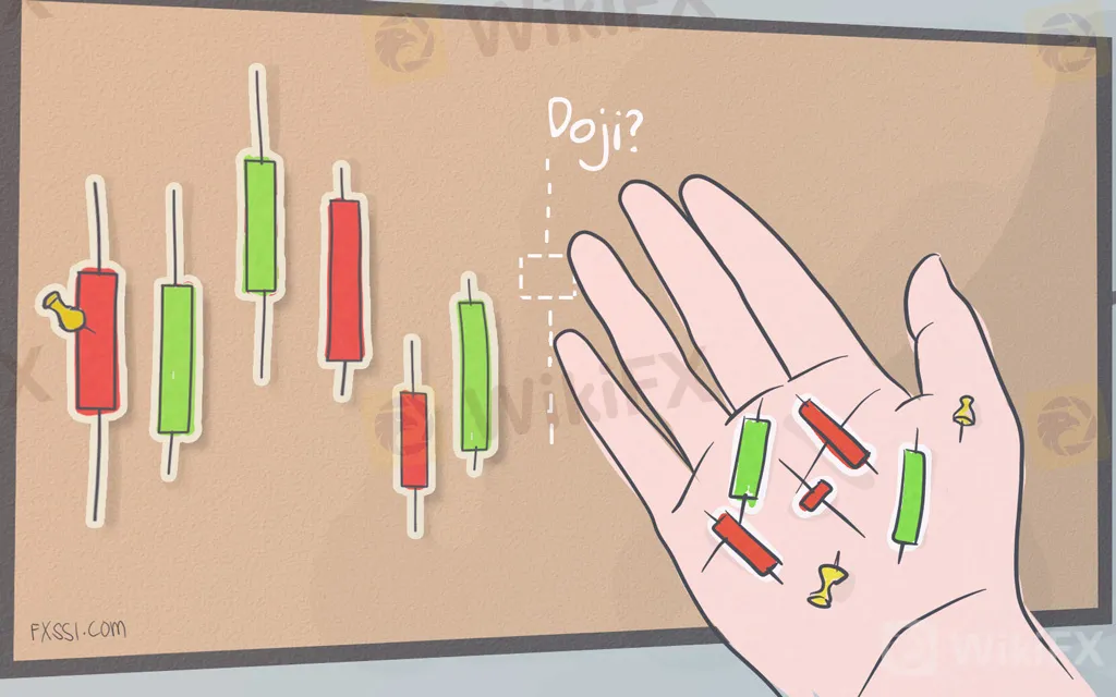 The Doji candlestick chart pattern is associated with indecision in the market of the underlying asset. This could mean potential reversal of the current trend or consolidation.