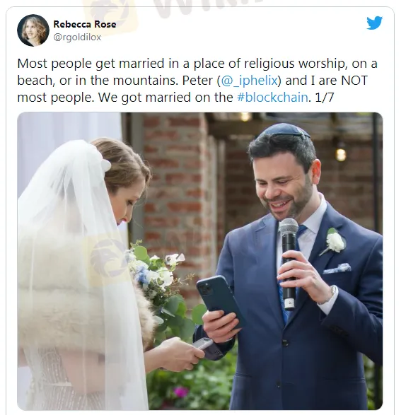 “The blockchain, unlike physical objects, is forever. It is unstoppable, impossible to censor, and does not require anyones permission. Just as love should be. What could possibly be more romantic than that.”This is not the first blockchain-based marriage, with DLT first being used to tie the knot back October 2014. The wedding saw David Mondrus and Joyce Bayo formalize their matrimony by scanning a QR code during a ceremony held during a private Bitcoin conference at Disney World in Orlando, Florida.