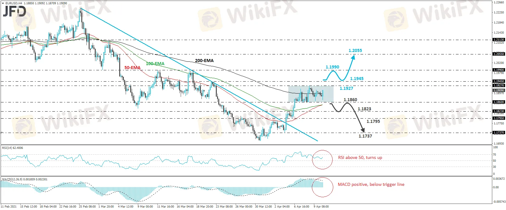 Now, in case the bears take charge and push the action below the ranges lower end, at 1.1860, we may see them initially aiming for the high of Apr. 5, at 1.1823, or the low of the day after, at around 1.1795. If neither barrier is strong enough to stop the decline, then we may experience extensions towards the low of Apr. 5, at around 1.1737.