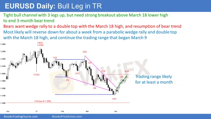 o Bulls want big rally today to above March 18 high, but big bull day unlikely after ii two days ago, and mostly trading range trading for six days.