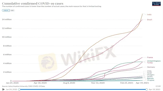Despite strong economic data released in the US and China recently, growth prospects appeared to be uneven in other parts of the world. Europe is struggling with a third viral wave and India is reporting an accelerated pace of increase in coronavirus infections (chart below). Japan saw tepid domestic demand as lockdowns in the Tokyo area and a slow pace of vaccination hindered an economic rebound.