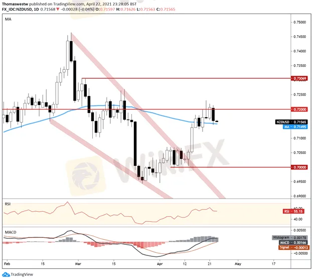 Abstract:NEW ZEALAND DOLLAR, NZD/USD, WALL STREET, MARKET SENTIMENT -TALKING POINTS - Asia-Pacific stocks likely to end week on a sour note following downbeat US session - US President Biden’s tax plan reportedly set to nearly double capital gains tax on wealthy - NZD/USD fails to clear psychological 0.72 handle, now threatens 50-day SMA