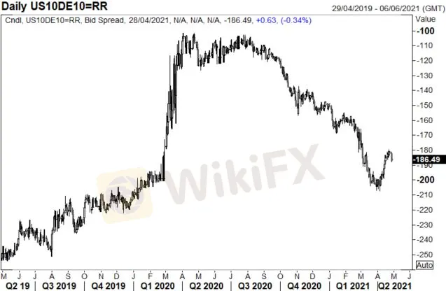 US 10-YEAR TREASURY/GERMAN 10-YEAR BUND YIELD SPREAD (MAY 2019 – MAY 2021)