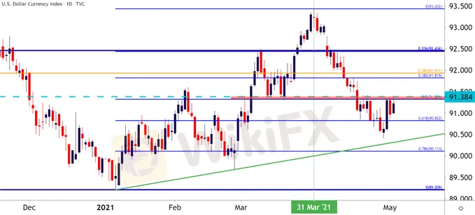 This provides motive for CAD-strength and, if we do see USD-weakness coming back, that could be a case of divergence to work with. The USD/CAD chart highlights some breakdown potentially off of 2017 and 2018 swing lows.