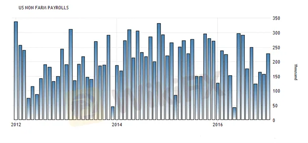 The non-farm payroll (NFP) figure is a key economic indicator for the United States economy. It represents the number of jobs added, excluding farm employees, government employees, private household employees and employees of nonprofit organizations.
