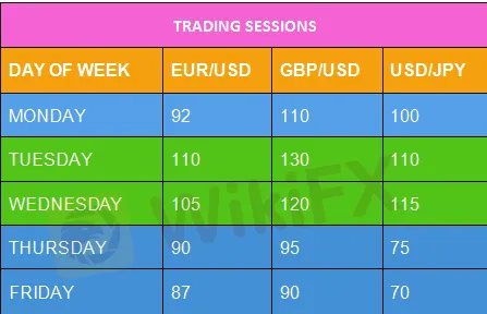 The European trading session is the most volatile session. Its widely known, that on some particular days markets move more actively than on others. The chart below shows average volatility in pips for three major currency pairs on business days: