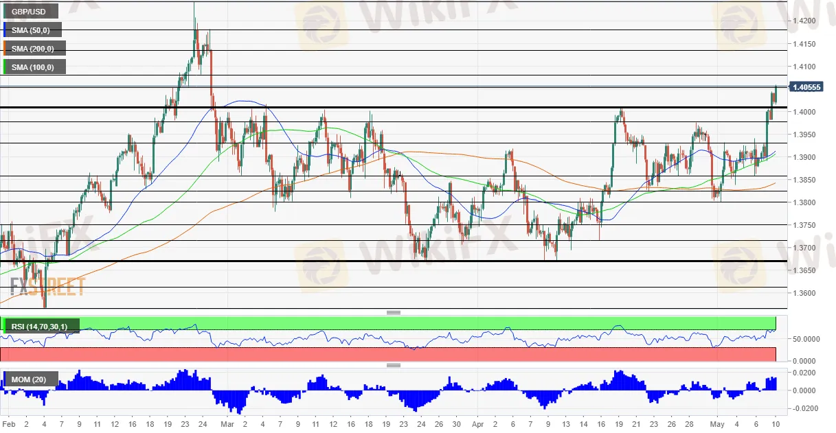 GBP/USD has surged above 1.40, hitting levels last seen in February.