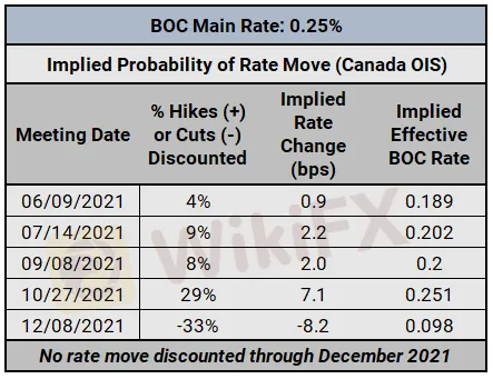 BANK OF CANADA INTEREST RATE EXPECTATIONS (JUNE 7, 2021) (TABLE 1)