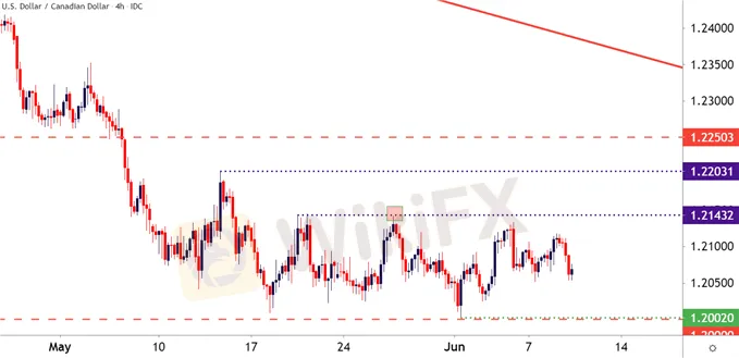 Chart prepared by James Stanley; USDCAD on Tradingview