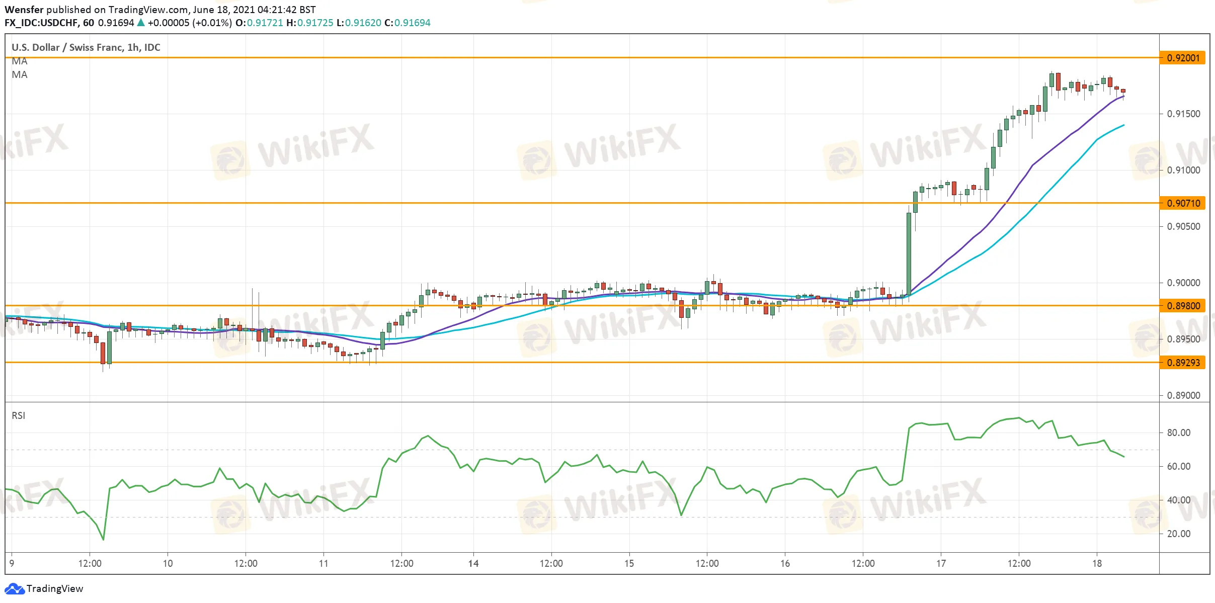 Strong momentum above 0.9090 indicates that the directional bias has shifted to the upside as sellers rush to bail out. The rebound is now testing the resistance at 0.9200 on the daily chart.