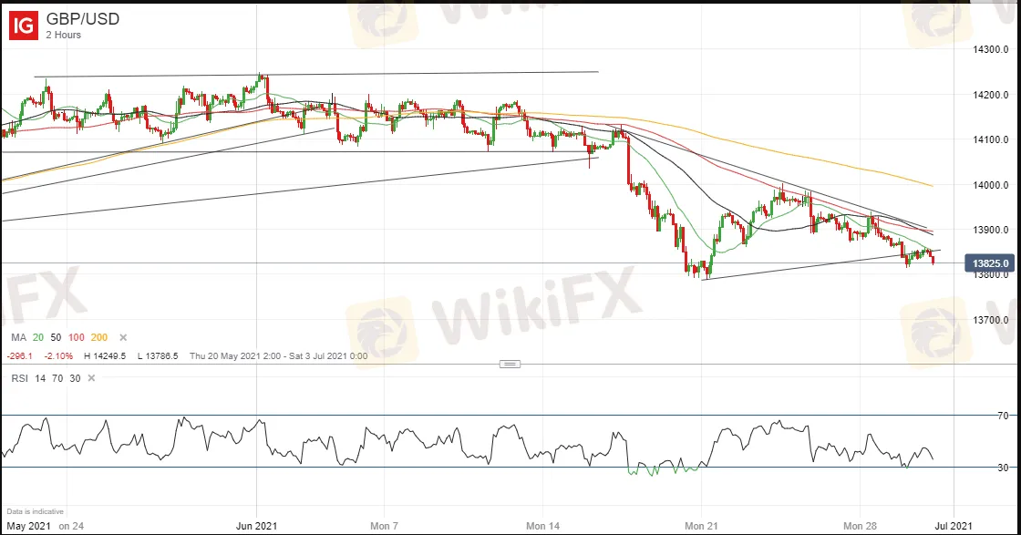 GBP/USD PRICE CHART, TWO-HOUR TIMEFRAME (MAY 20 – JUNE 30, 2021)