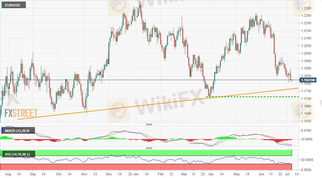 The EUR/USD pair failed to capitalize on Tuesday's modest gains to the 1.1900 neighbourhood and dived back closer to the three-month lows touched last week. The shared currency weakened across the board in reaction to disappointing economic data, which, along with a goodish pickup in the US dollar demand exerted some downward pressure on the major. The shared currency weakened across the board in reaction to disappointing ZEW survey results, which showed that investors sentiment in Germany – the Eurozone's biggest economy – fell sharply in July. The index tumbled to 63.3 for the current month from 79.8 previous. Adding to this, the gauge for the broader Eurozone dropped to 61.2 for the current month, missing 84.4 consensus estimates.