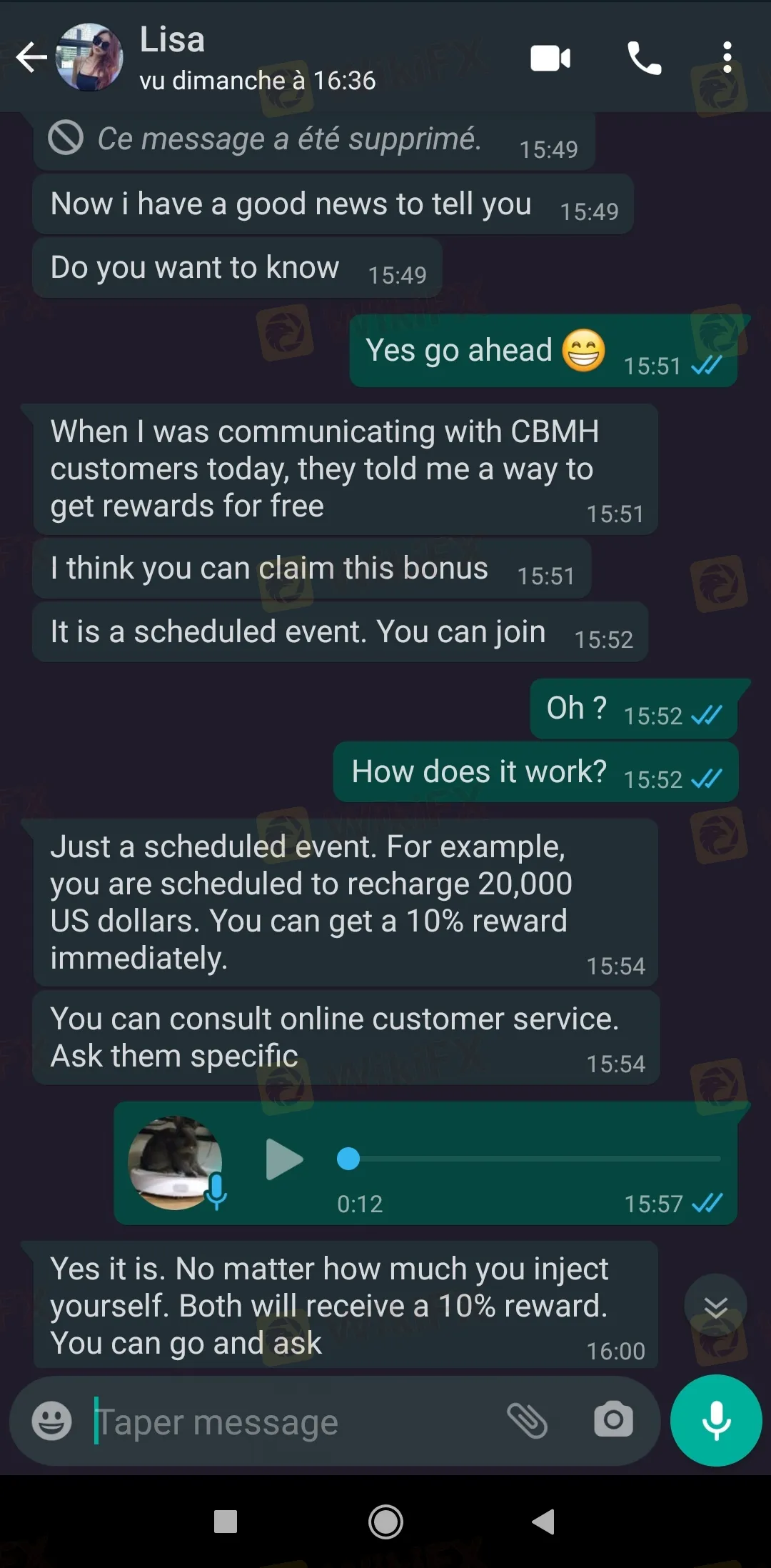 CBMH asked me to pay taxes when I first tried to withdraw, corresponding to 14% of my invested money. They told me I could then withdraw without limit. I paid it with the help of the Chinese girl.