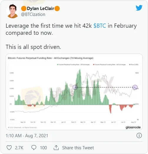 Abstract:Bullish AF: Bitcoin At $42K, Comparing Today’s Leverage With That Of February