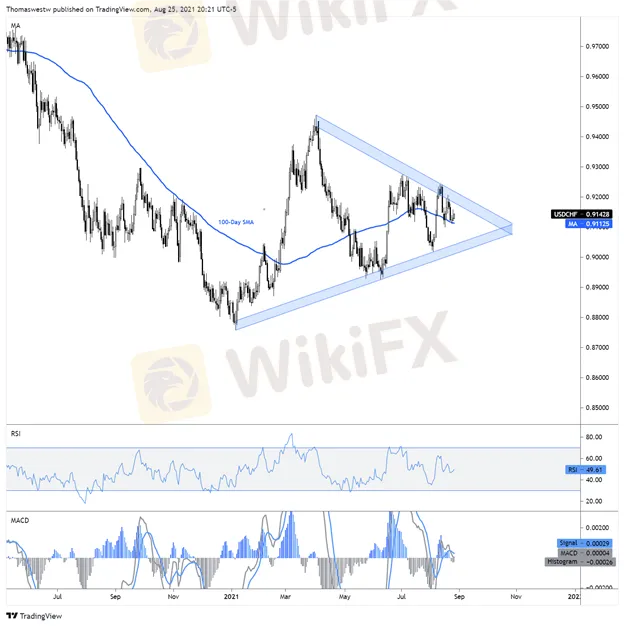 Abstract:USD/CHF may continue 2020 downtrend on triangle break