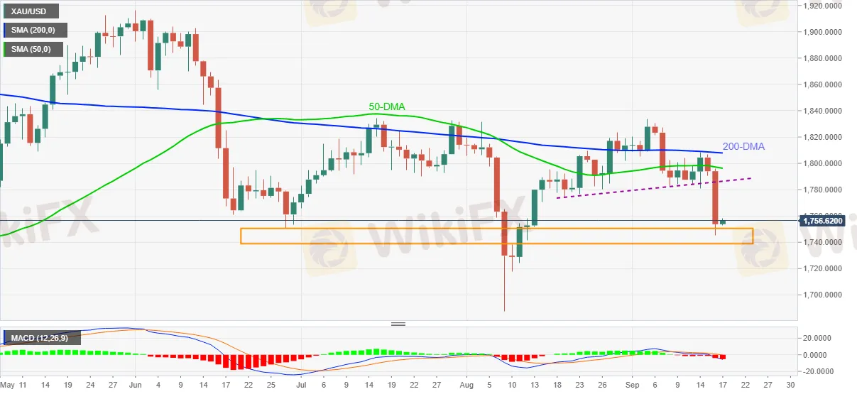 With the bearish MACD signals and sustained trading below the key moving averages joining Thursdays support break, gold bears remain in control unless the quote bounces back beyond the support-turned-resistance near $1,786.