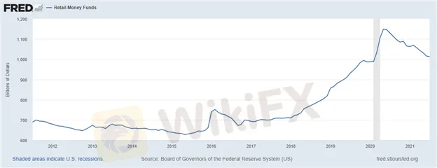 In fact, over the past year, retail money funds have dropped by approximately $100 billion, according to data retrieved from the St. Louis Federal Reserves database. Early indications from the third quarter of 2021 suggest that account openings slowed, perhaps as much by 50%, consistent with the data that shows retail money funds are now at their lowest since February 2020 – the month before the US economy began to lockdown.