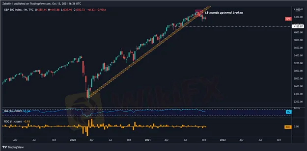 Since the March 2020 bottom, the S&P 500 has climbed along a steady 18-month uptrend, clocking in a whopping 90 percent rise. The benchmark index declined a little over 3 percent in recent weeks however, and in that process invalided rising trend support. The implications of this breach for broader positioning will probably reveal themselves in the next few weeks.