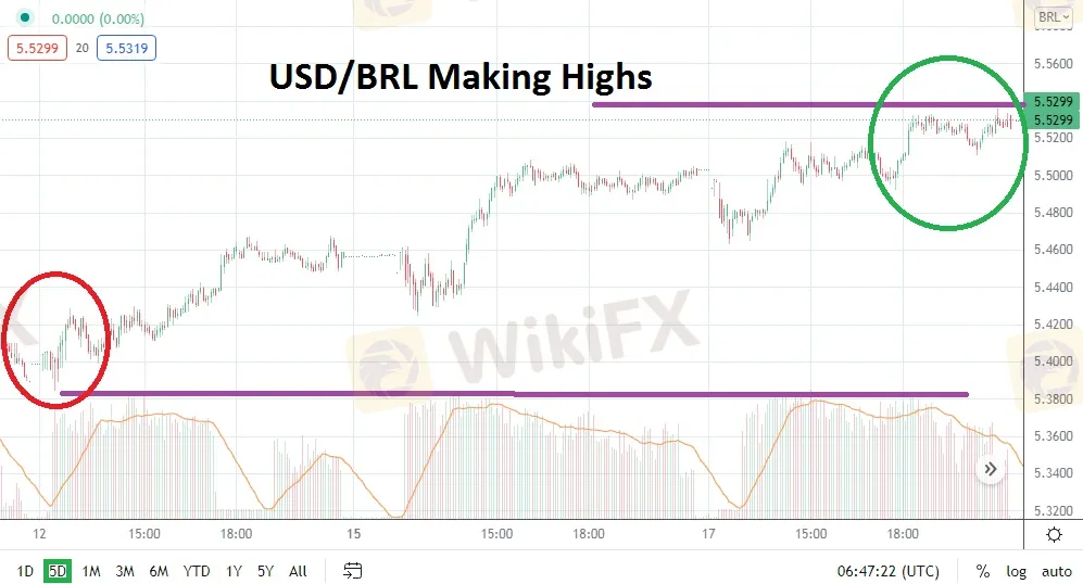 Abstract:The USD/BRL traversed higher again yesterday and finished its trading within short-term highs, and speculators now need to decide if the trend can be sustained. The USD/BRL ended yesterday’s trading near the 5.5300 vicinity, which is a short-term high for the Forex pair. On the 11th and 12th of November the USD/BRL traded at its one-month lows around the 5.3800 ratio. Trading the past week has created a rather incremental bullish trend, but the highs now being tested are within sight of important resistance levels near 5.5500 and 5.5600. As recently as the 3rd of November the USD/BRL was trading near the 5.6800 level, but after testing this higher realm its resistance proved strong, and the Forex pair reversed lower until hitting its steepest short-term depths in the second week of this month. A look at a one-month chart could give a trader the perception that the USD/BRL is still slightly within the lower realms of its technical range. When trading begins today it will be intriguing